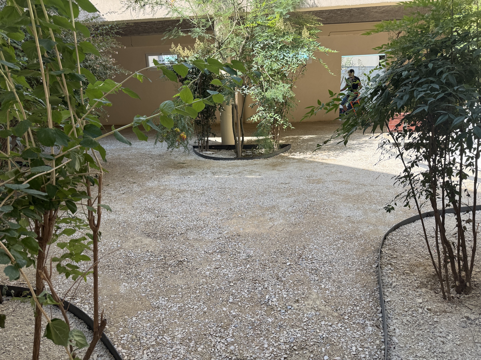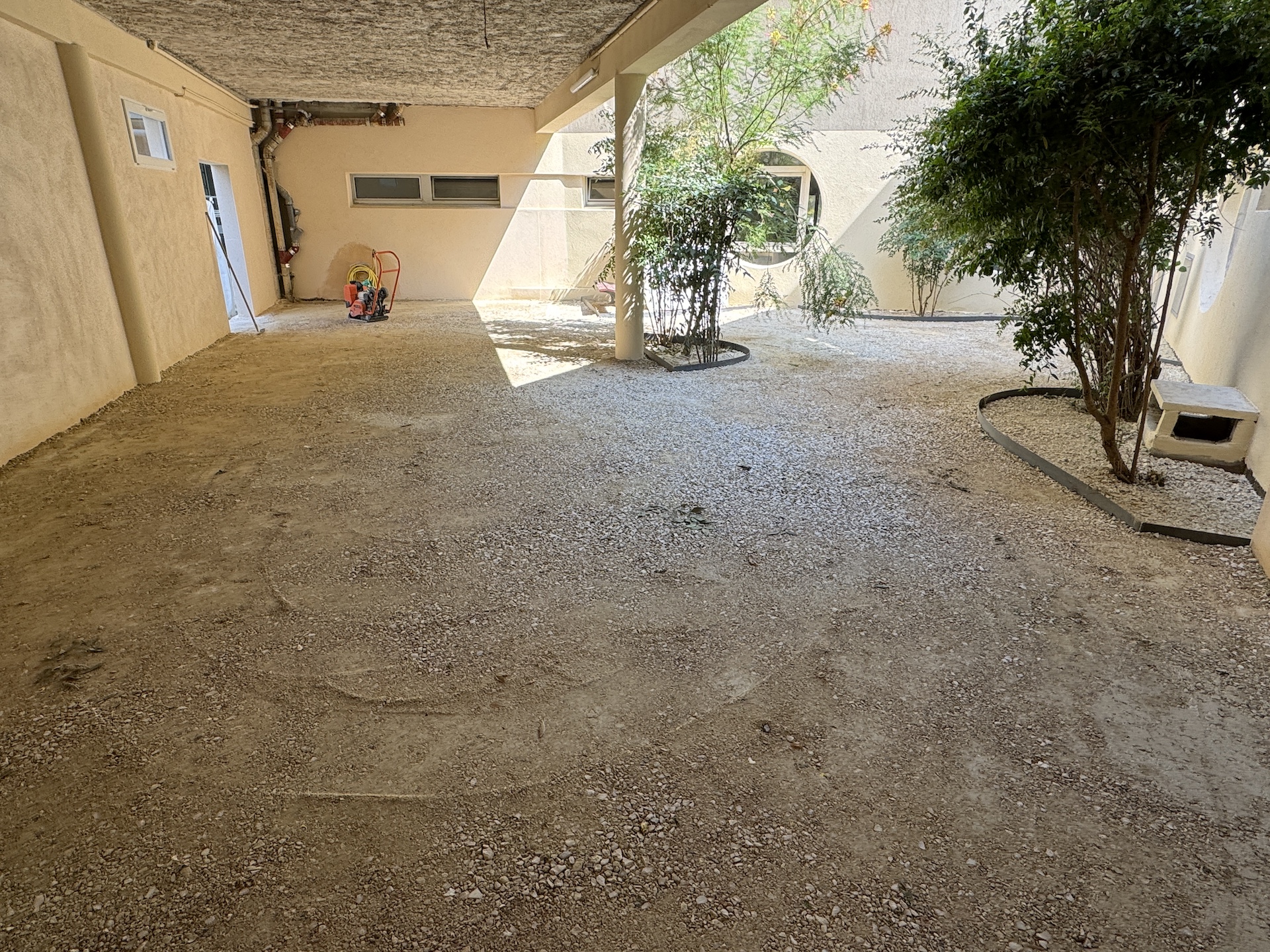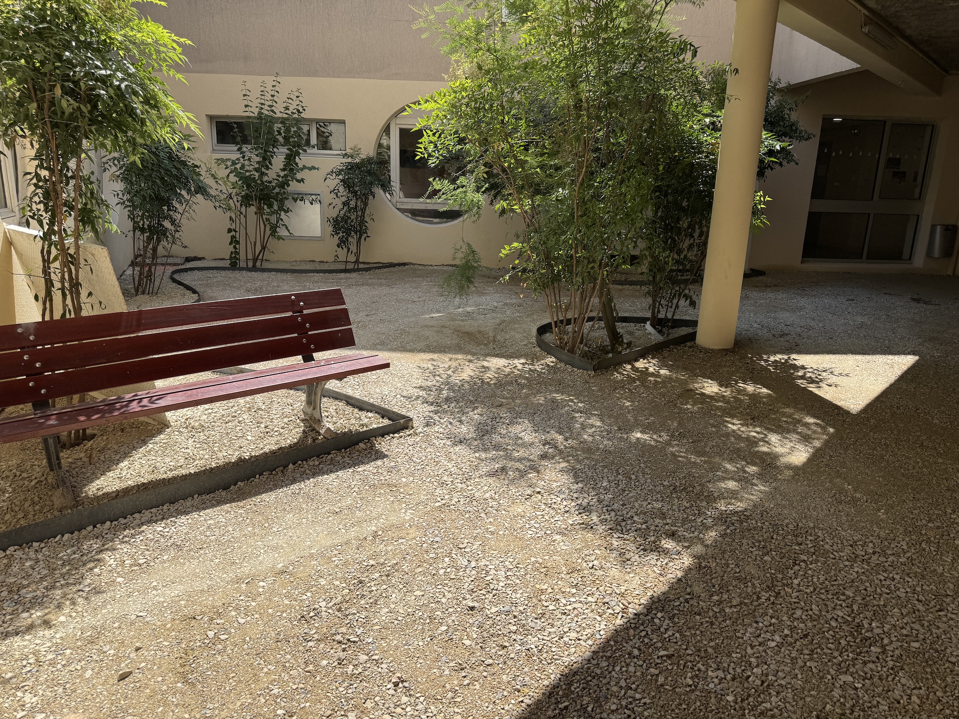 Aménagement d’un sol amortissant dans le patio de l’unité mère-enfant de l’hôpital Henri Duffaut d’Avignon, Vaucluse (84)