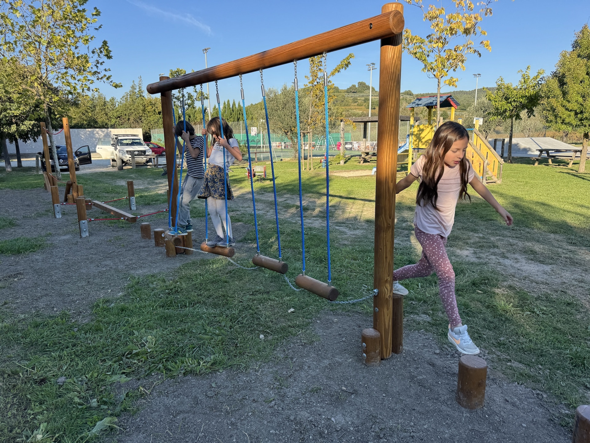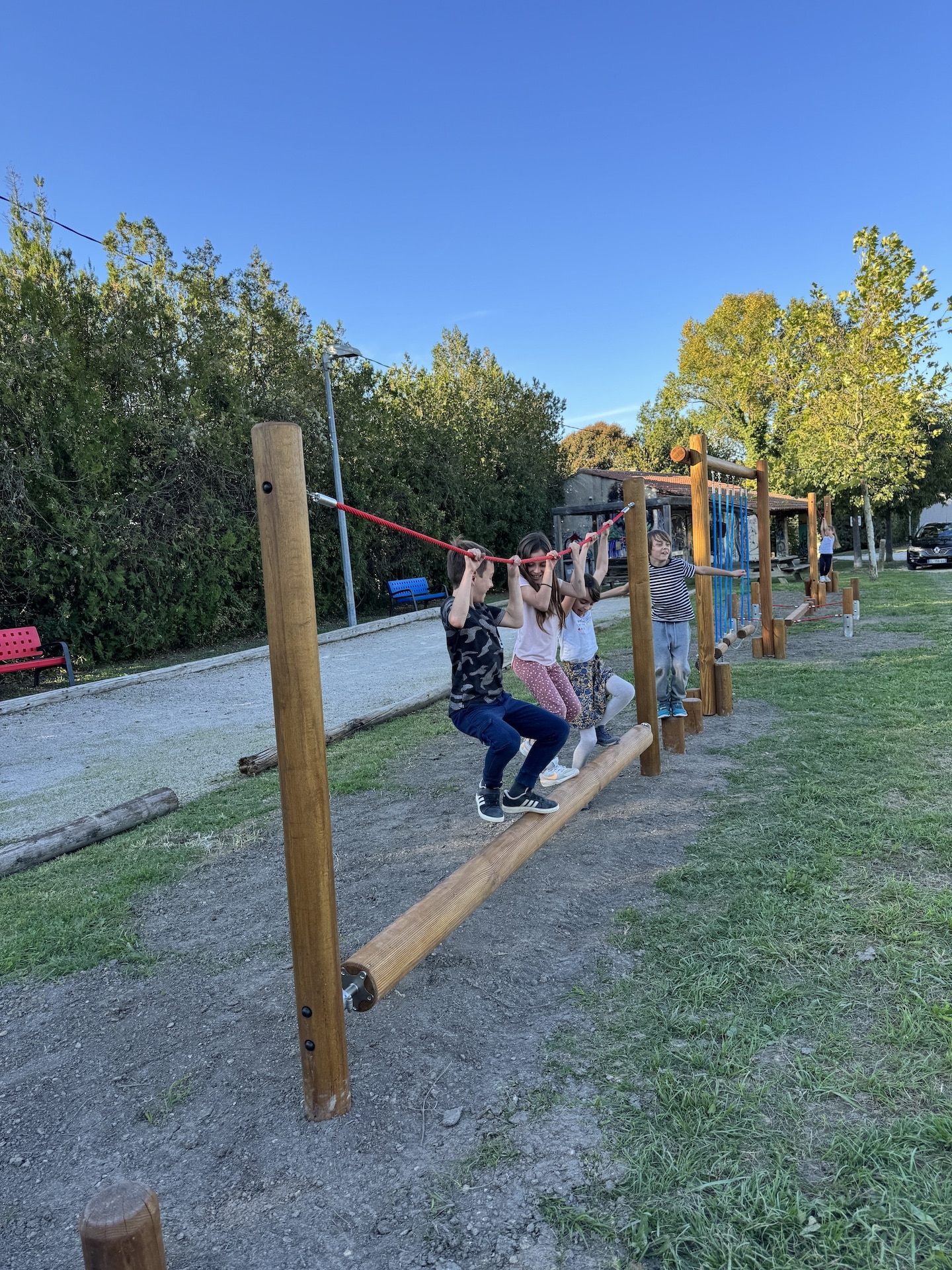 Aménagement d’aire de jeux à Villedieu : parcours d’équilibre en bois et table de ping-pong