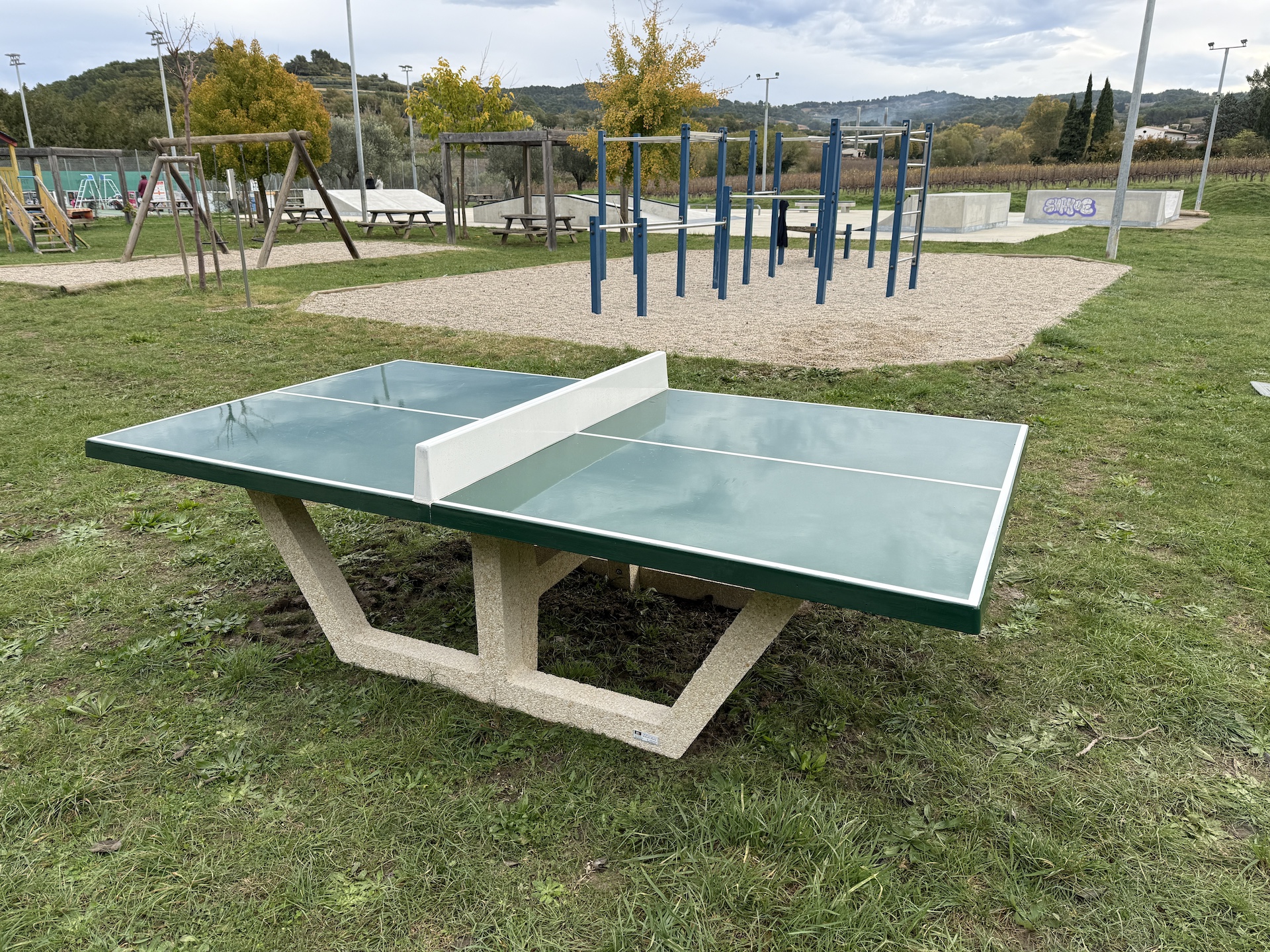 En complément du parcours, PLAYTIL a également réalisé l’installation d’une table de ping-pong extérieure. Cet équipement sportif extérieur est idéal pour un usage en libre accès, robuste et très apprécié dans les parcs publics et espaces de loisirs.