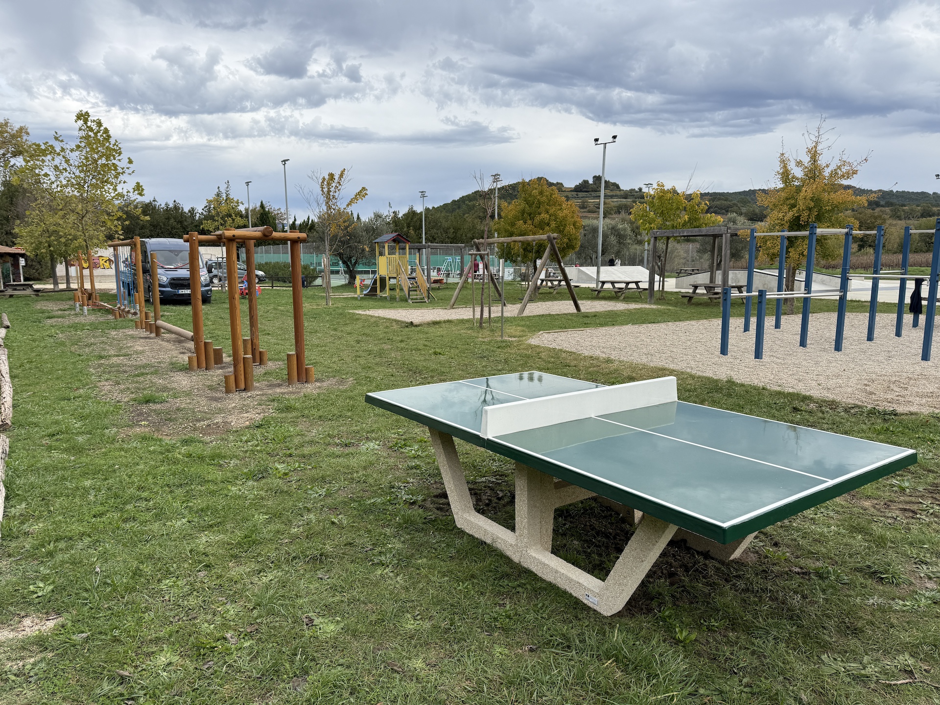 Aménagement d’aire de jeux à Villedieu (Vaucluse) : parcours d’équilibre en bois et table de ping-pong